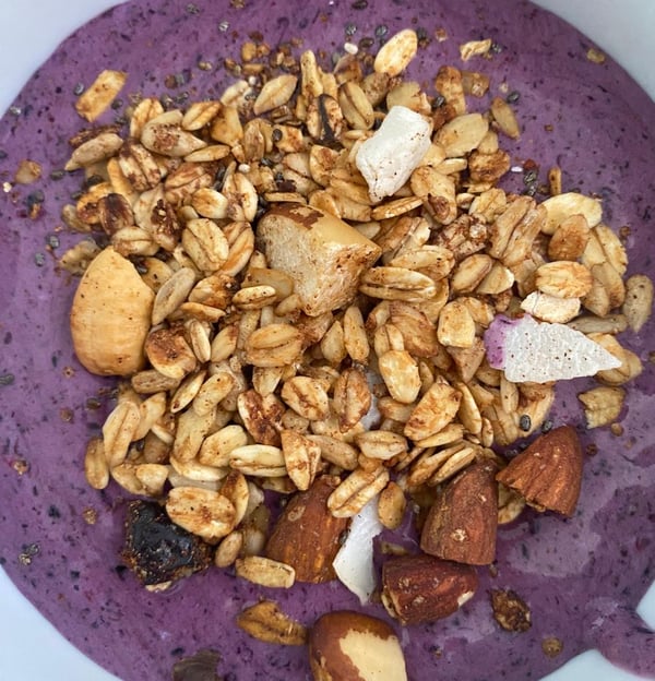 “Não consigo parar de comer, juro por Deus. E assim, pedaçuda, sabe, uns pedaços grandes de castanha, pedaço grande de damasco… falei até pro Marcelo, não acha granola desse jeito em lugar nenhum, sente os ingredientes, não é só um tanto de coisa misturada, surreal" - Isabella